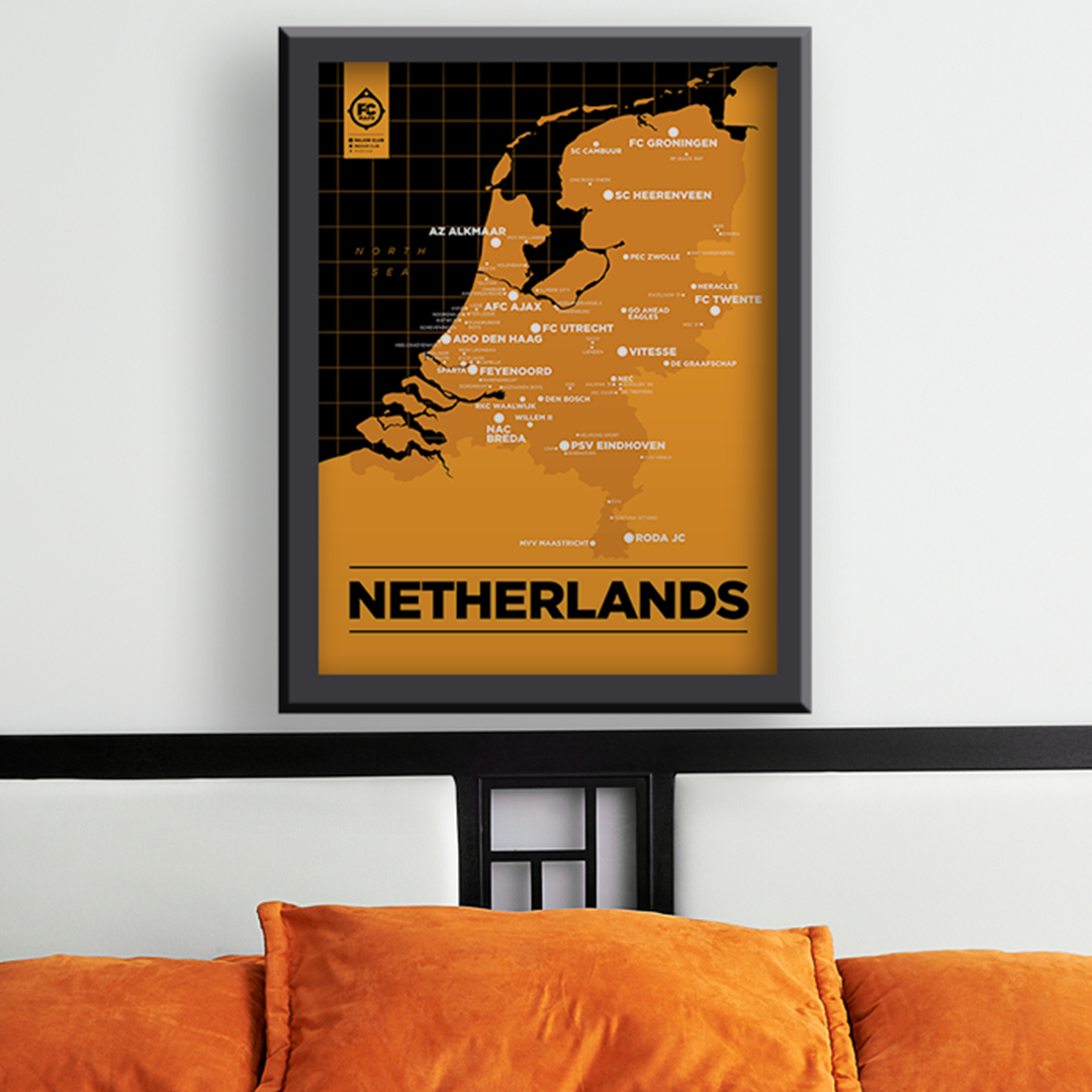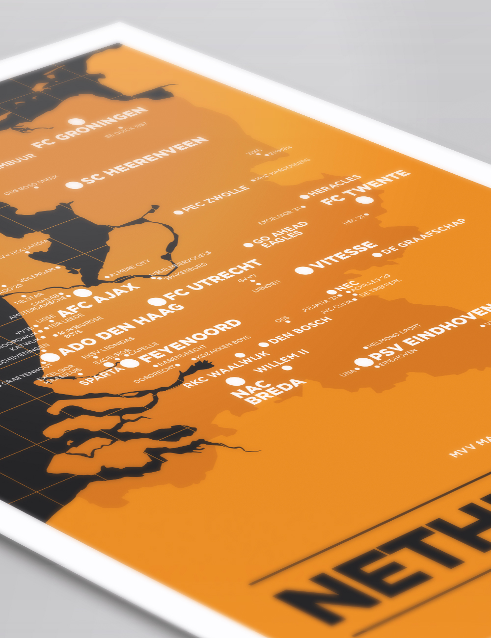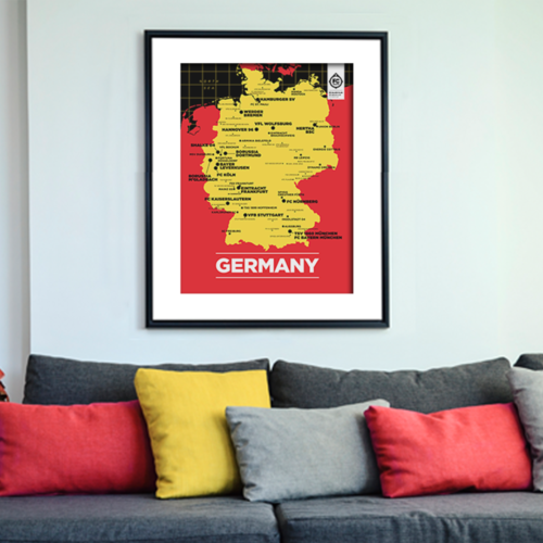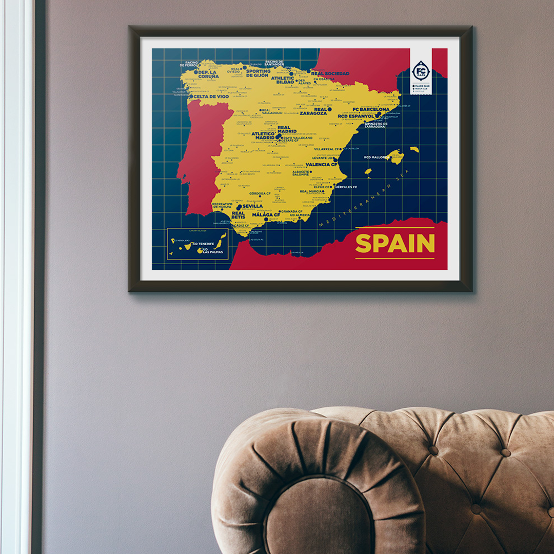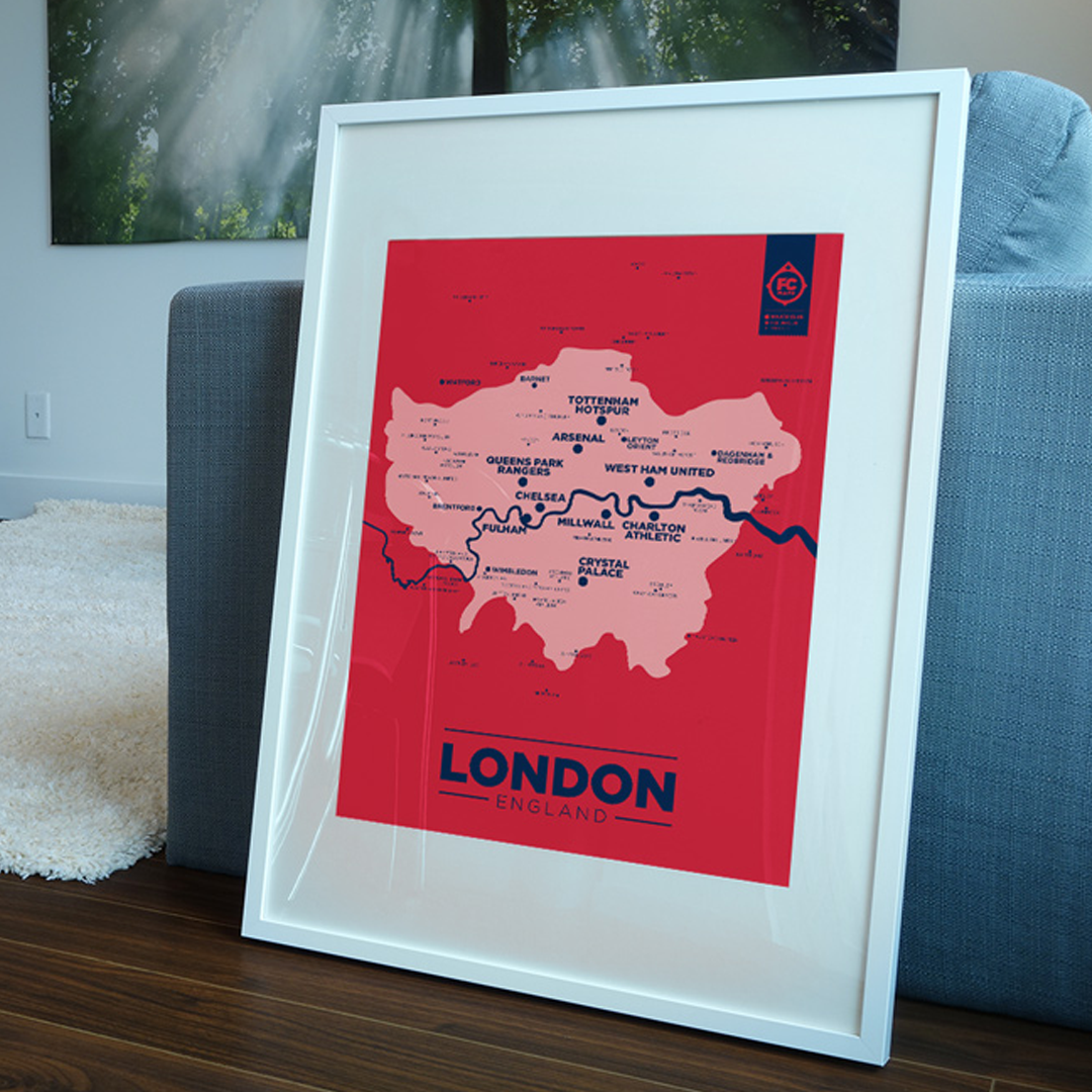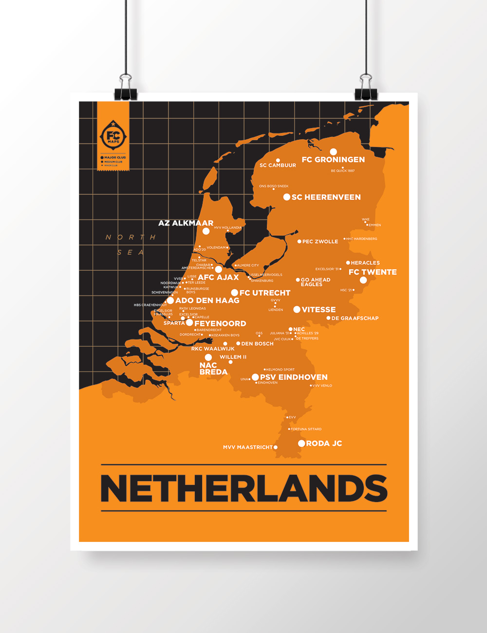 A series of posters mapping the locations of major football clubs across selected countries. Each piece required researching club histories and geographic locations, translating that information into clean, stylized map designs celebrating football culture. The posters were produced as high-quality screen prints in collaboration with a local Los Angeles print shop.