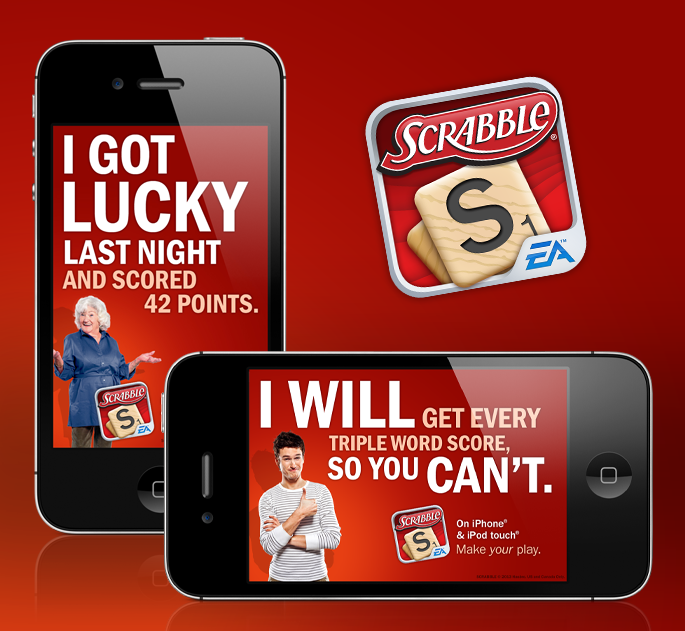 Scrabble was a mobile game based on the board game of the same name. We wanted to update the brand of the Scrabble game which by this time was considered a bit dated. So we decided to use humor to make it seem more fun and not so serious. I also designed the app icon.