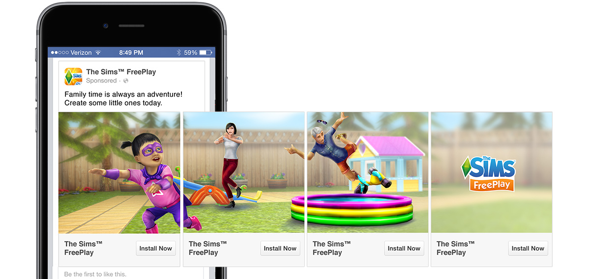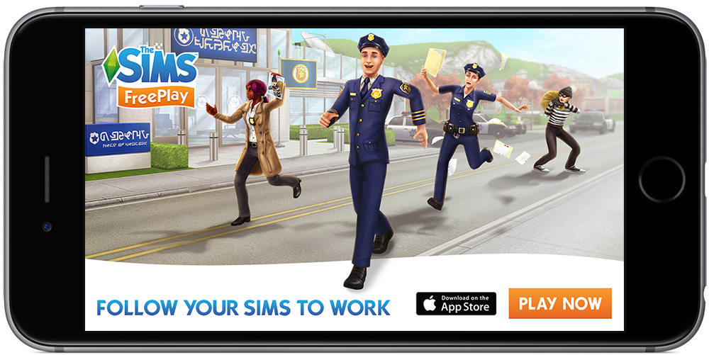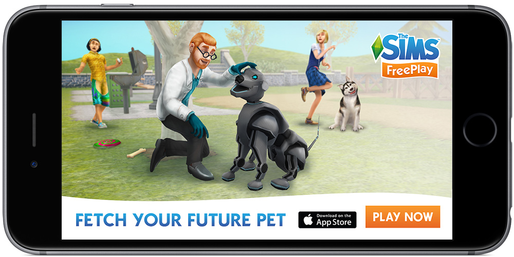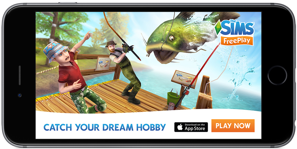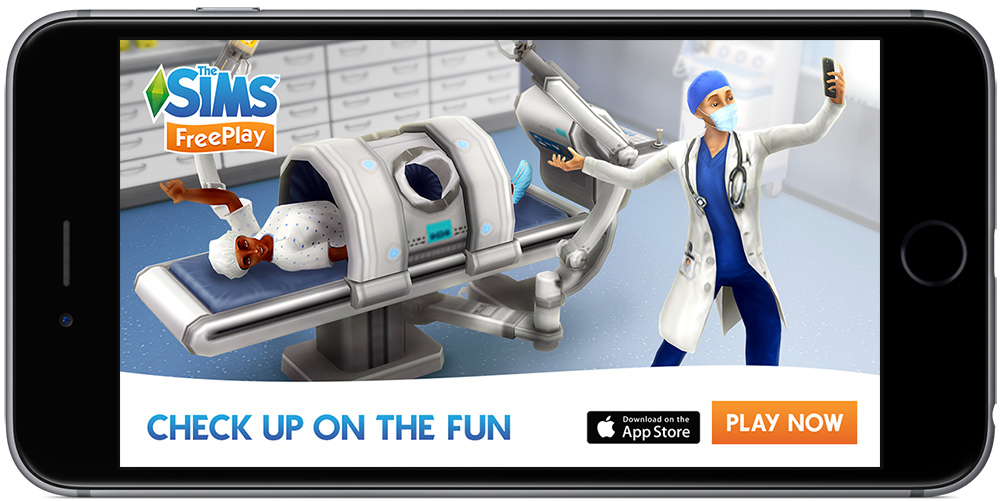 Sim FreePlay is the mobile version of the hugely popular PC life simulation game The Sims. I was tasked with not only conceptualizing, designing, and producing UA ads. But also building a creative strategy around the many different ads and stories we told through them. I worked with the studio team to pose and capture the characters/scenes from sketches and did the final layout/design work.